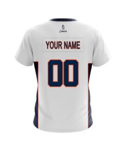 Designed, cut and sewn by hand stay 40% cooler with CoolWick. Our Denver Away Football CoolWick Bowling Jerseys are made of two different fabrics with the back being our CoolWick technology fabric that helps wick moisture away and helps air flow more easily through the fibers.