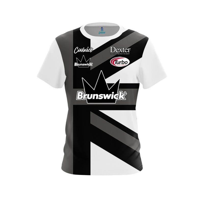 Shop now and elevate your game with the Brunswick Dom Barrett White Black Union Jack CoolWick Bowling Jersey – exceeding the benchmark of performance and style.