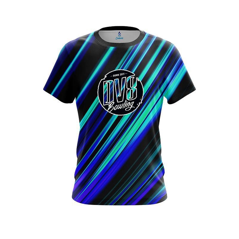 Stay 40% cooler with CoolWick. Our DV8 Blue And Green Digital Stripe CoolWick Bowling Jerseys are made of two different fabrics with the back being our CoolWick technology fabric that helps wick moisture away and helps air flow more easily through the fibers.