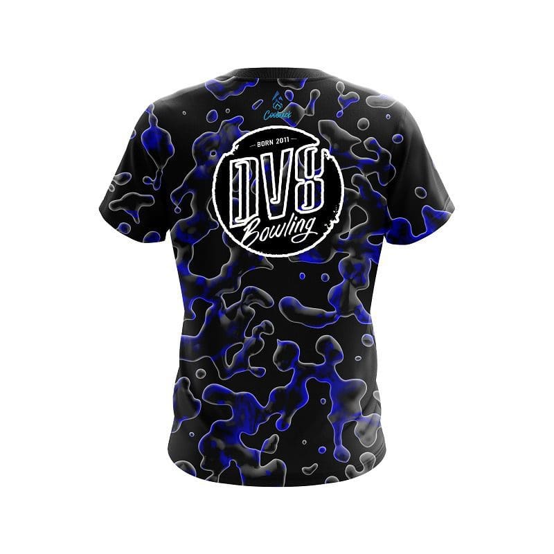 Stay 40% cooler with CoolWick. Our DV8 Blue Flowing Fluid CoolWick Bowling Jerseys are made of two different fabrics with the back being our CoolWick technology fabric that helps wick moisture away and helps air flow more easily through the fibers.