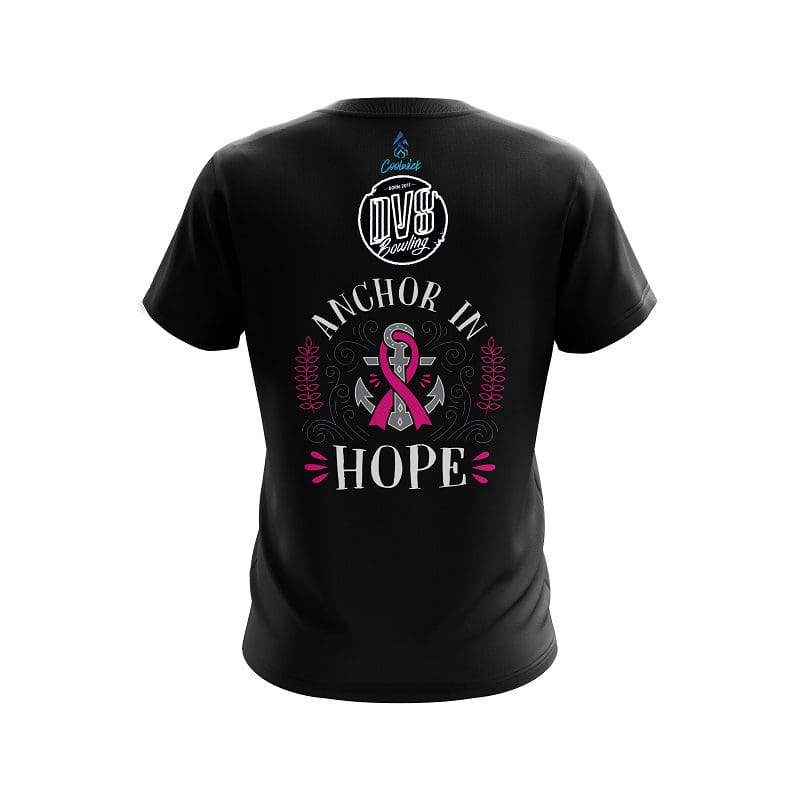 Stay 40% cooler with CoolWick. Our DV8 Breast Cancer Anchor Fighter CoolWick Bowling Jerseys are made of two different fabrics with the back being our CoolWick technology fabric that helps wick moisture away and helps air flow more easily through the fibers.