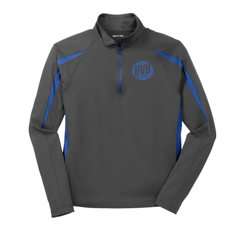 Get ready to roll in style with the DV8 Coolwick Grey True Royal Sport-Wick Stretch 1/2-Zip Colorblock Pullover! Perfect for any day at the lanes, this pullover is fashionable and functional. Whether you’re aiming for strikes or just want to look good for the camera, this bowling pullover is sure to make an impression!