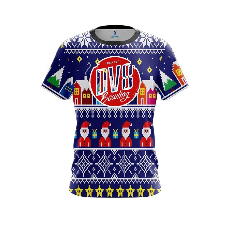 Stay 40% cooler with CoolWick. Our DV8 Dirty Santa Blue CoolWick Bowling Jerseys are made of two different fabrics with the back being our CoolWick technology fabric that helps wick moisture away and helps air flow more easily through the fibers.