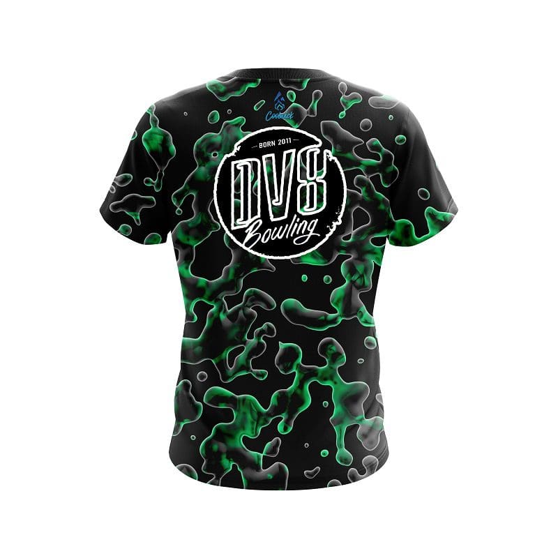 Stay 40% cooler with CoolWick. Our DV8 Green Flowing Fluid CoolWick Bowling Jerseys are made of two different fabrics with the back being our CoolWick technology fabric that helps wick moisture away and helps air flow more easily through the fibers.