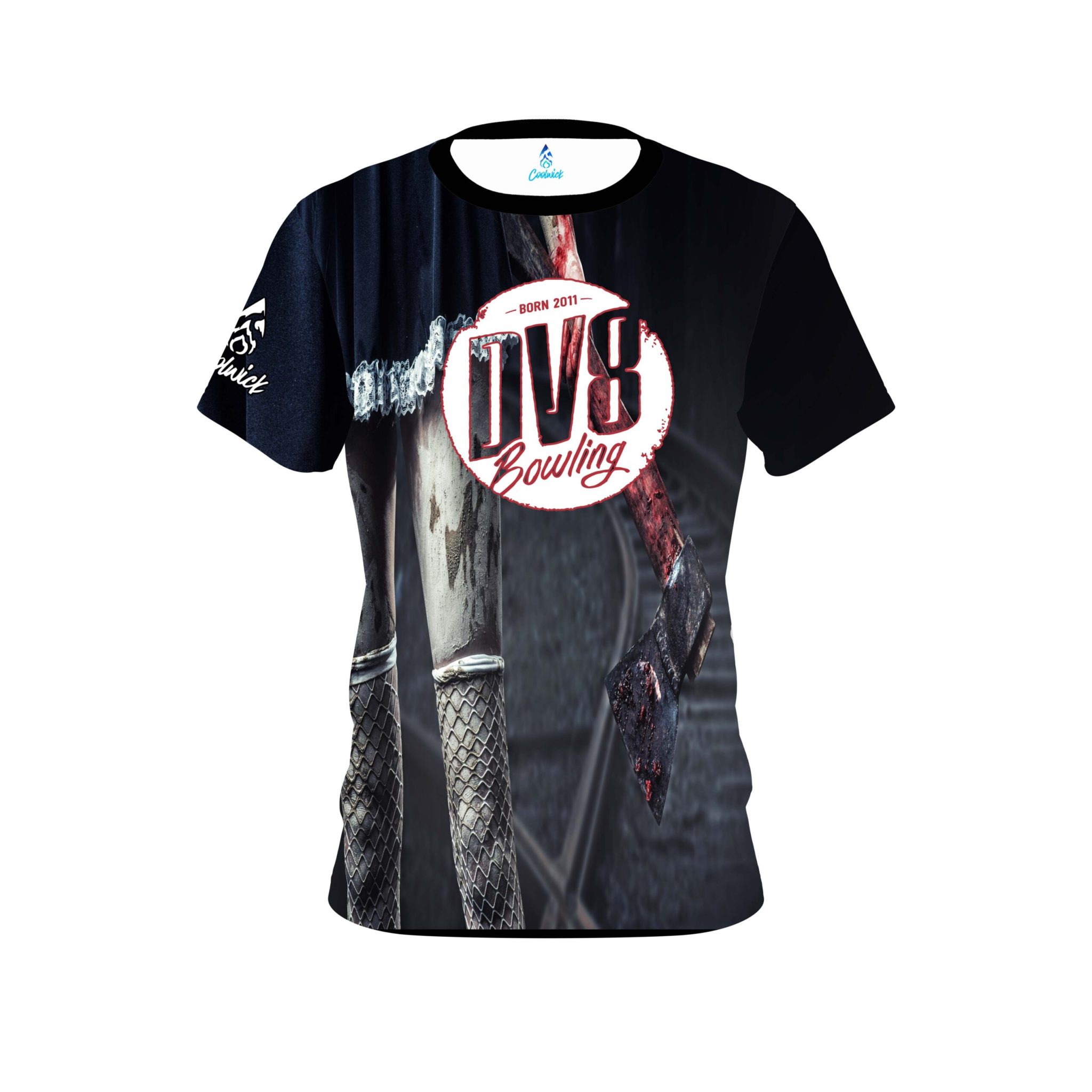 Stay 40% cooler with CoolWick. Our DV8 Halloween Axe Coolwick Bowling Jerseys are made of two different fabrics with the back being our CoolWick technology fabric that helps wick moisture away and helps air flow more easily through the fibers.
