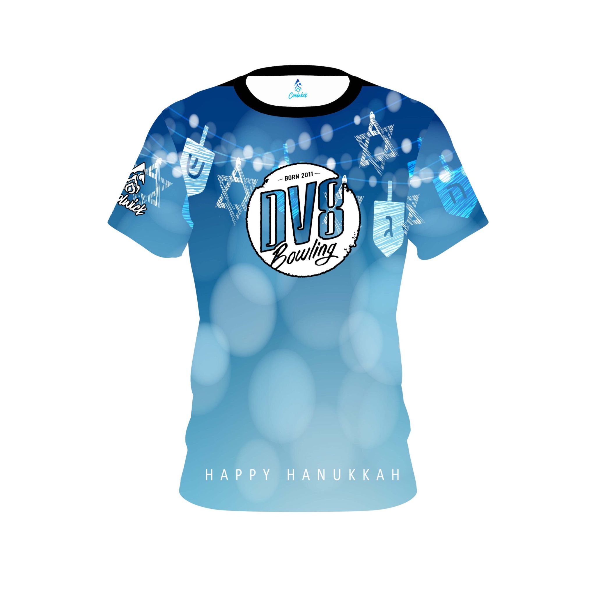 Stay 40% cooler with CoolWick. Our DV8 Hanukkah Holiday Time Coolwick Bowling Jerseys are made of two different fabrics with the back being our CoolWick technology fabric that helps wick moisture away and helps air flow more easily through the fibers.