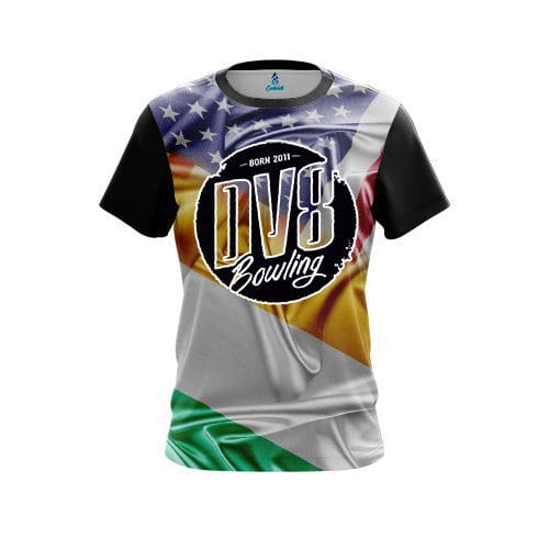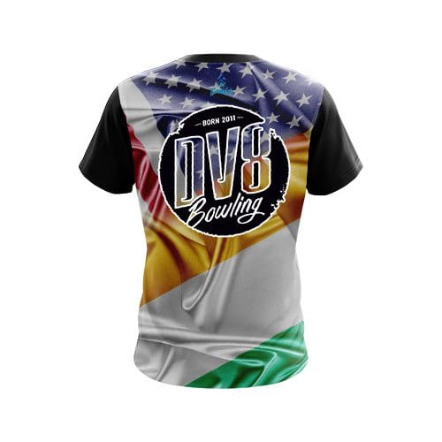 Stay 40% cooler with CoolWick. Our DV8 Ireland USA Flag Shirt CoolWick Bowling Jerseys are made of two different fabrics with the back being our CoolWick technology fabric that helps wick moisture away and helps air flow more easily through the fibers.