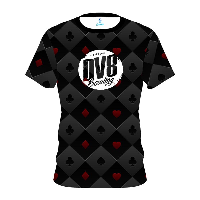 Stay 40% cooler with CoolWick. Our DV8 Logo Deck of Cards CoolWick Bowling Jerseys are made of two different fabrics with the back being our CoolWick technology fabric that helps wick moisture away and helps air flow more easily through the fibers.