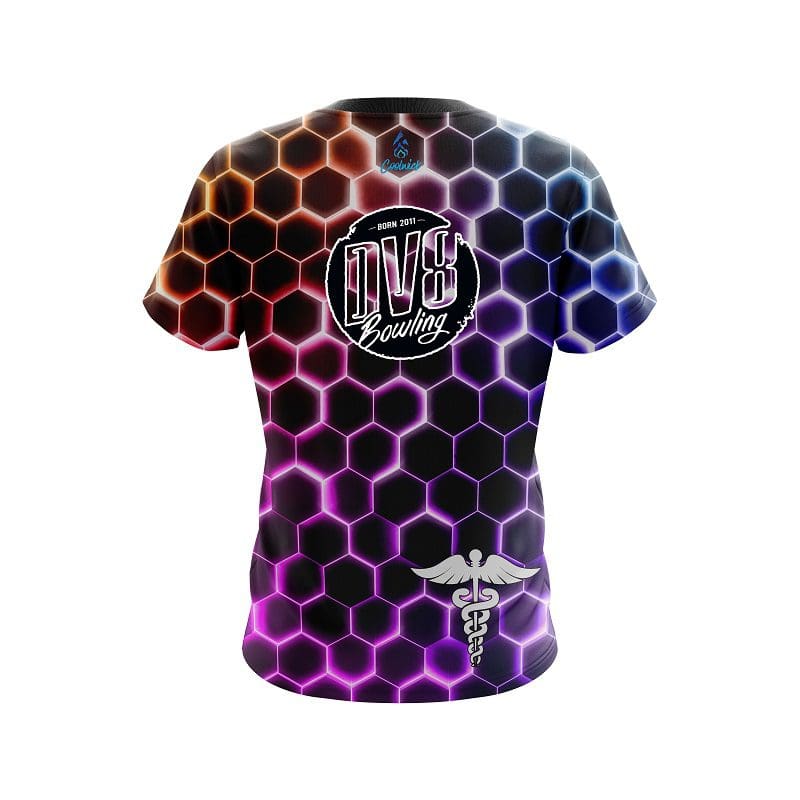 Stay 40% cooler with CoolWick. Our DV8 Medical Snake Hex CoolWick Bowling Jerseys are made of two different fabrics with the back being our CoolWick technology fabric that helps wick moisture away and helps air flow more easily through the fibers.