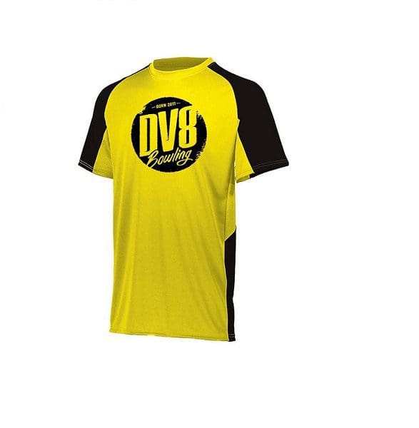 DV8 Men’s Creed Performance Crew Bowling Shirt Dri-Fit Yellow Black