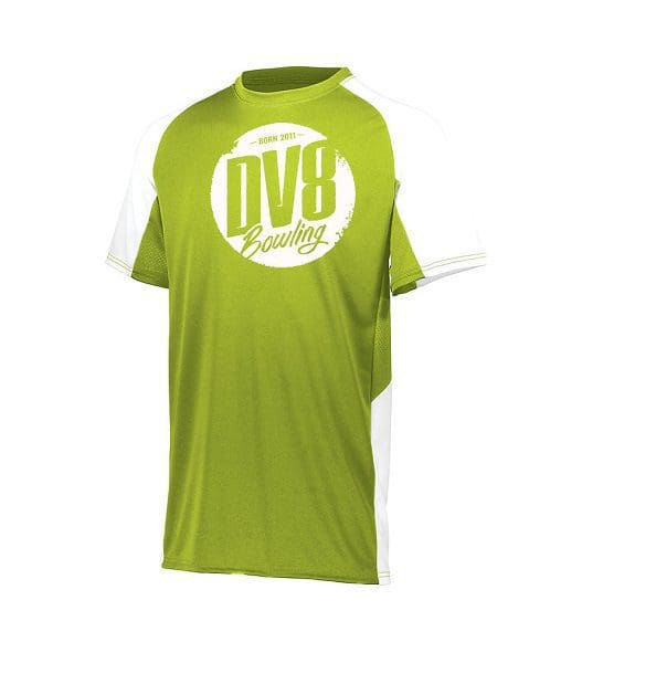 DV8 Men’s Creed Performance Crew Neck Bowling Shirt Dri-Fit Lime White