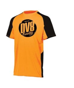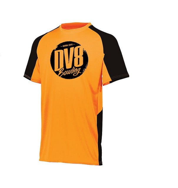 DV8 Men’s Creed Performance Crew Neck Bowling Shirt Dri-Fit Power Orange Black