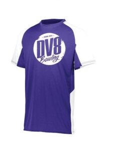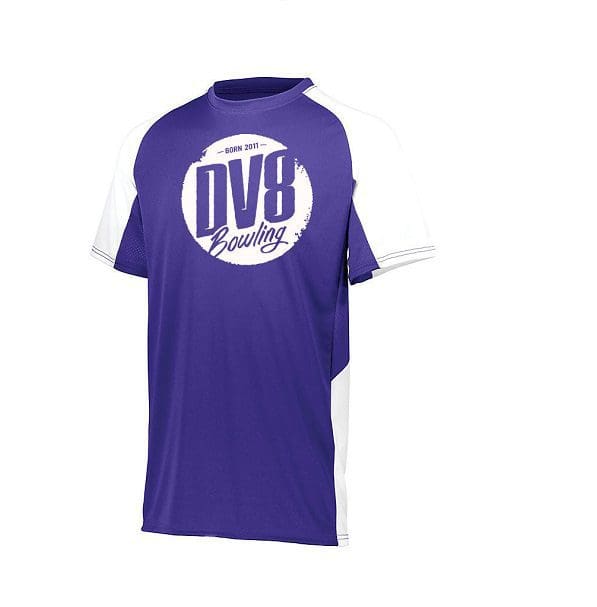 DV8 Men’s Creed Performance Crew Neck Bowling Shirt Dri-Fit Purple White