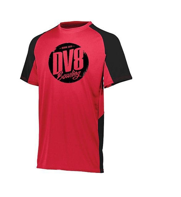 DV8 Men’s Creed Performance Crew Neck Bowling Shirt Dri-Fit Red Black