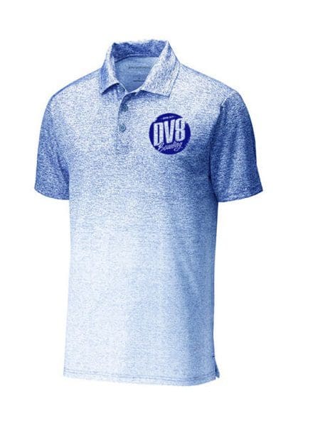 DV8 Men’s Rebellion Ombre Heather Performance Polo Bowling Shirt White Royal Blue