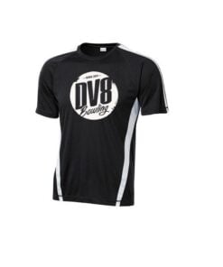 DV8 Men’s Rumor Performance Crew Neck Bowling Shirt DriFit Black White