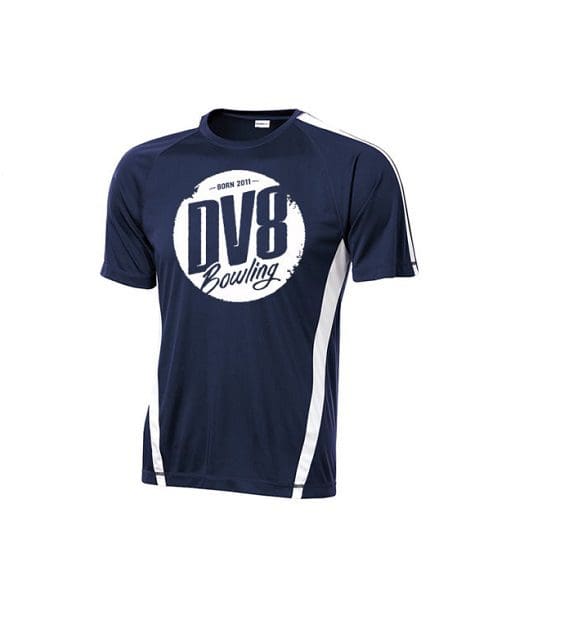 DV8 Men’s Rumor Performance Crew Neck Bowling Shirt DriFit Navy White