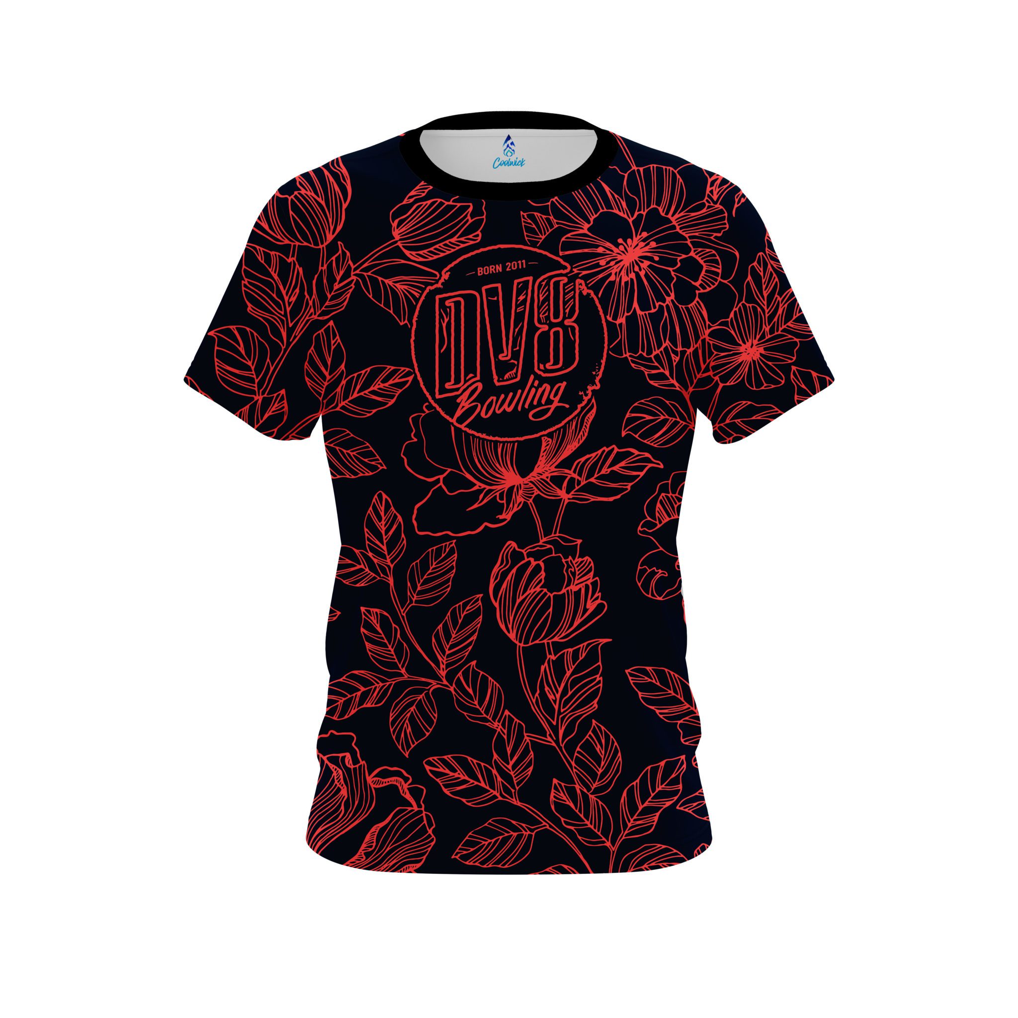 Stay 40% cooler with CoolWick. Our DV8 Navy Red Flower Tattoo CoolWick Bowling Jerseys are made of two different fabrics with the back being our CoolWick technology fabric that helps wick moisture away and helps air flow more easily through the fibers.