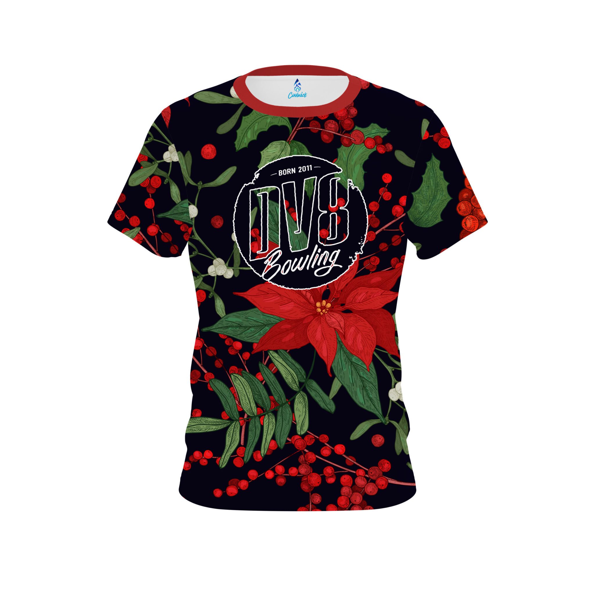 Stay 40% cooler with CoolWick. Our DV8 Poinsettia CoolWick Bowling Jersey are made of two different fabrics with the back being our CoolWick technology fabric that helps wick moisture away and helps air flow more easily through the fibers.
