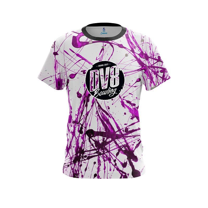 Stay 40% cooler with CoolWick. Our DV8 Purple Paint Splash CoolWick Bowling Jerseys are made of two different fabrics with the back being our CoolWick technology fabric that helps wick moisture away and helps air flow more easily through the fibers.