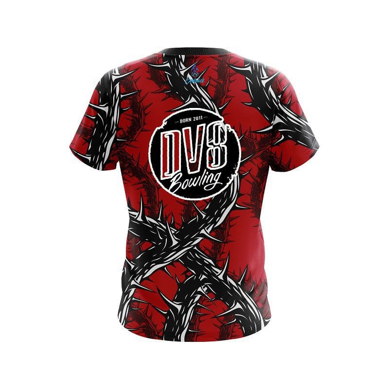 Stay 40% cooler with CoolWick. Our DV8 Rock And Roll Red Thorns CoolWick Bowling Jersey are made of two different fabrics with the back being our CoolWick technology fabric that helps wick moisture away and helps air flow more easily through the fibers.