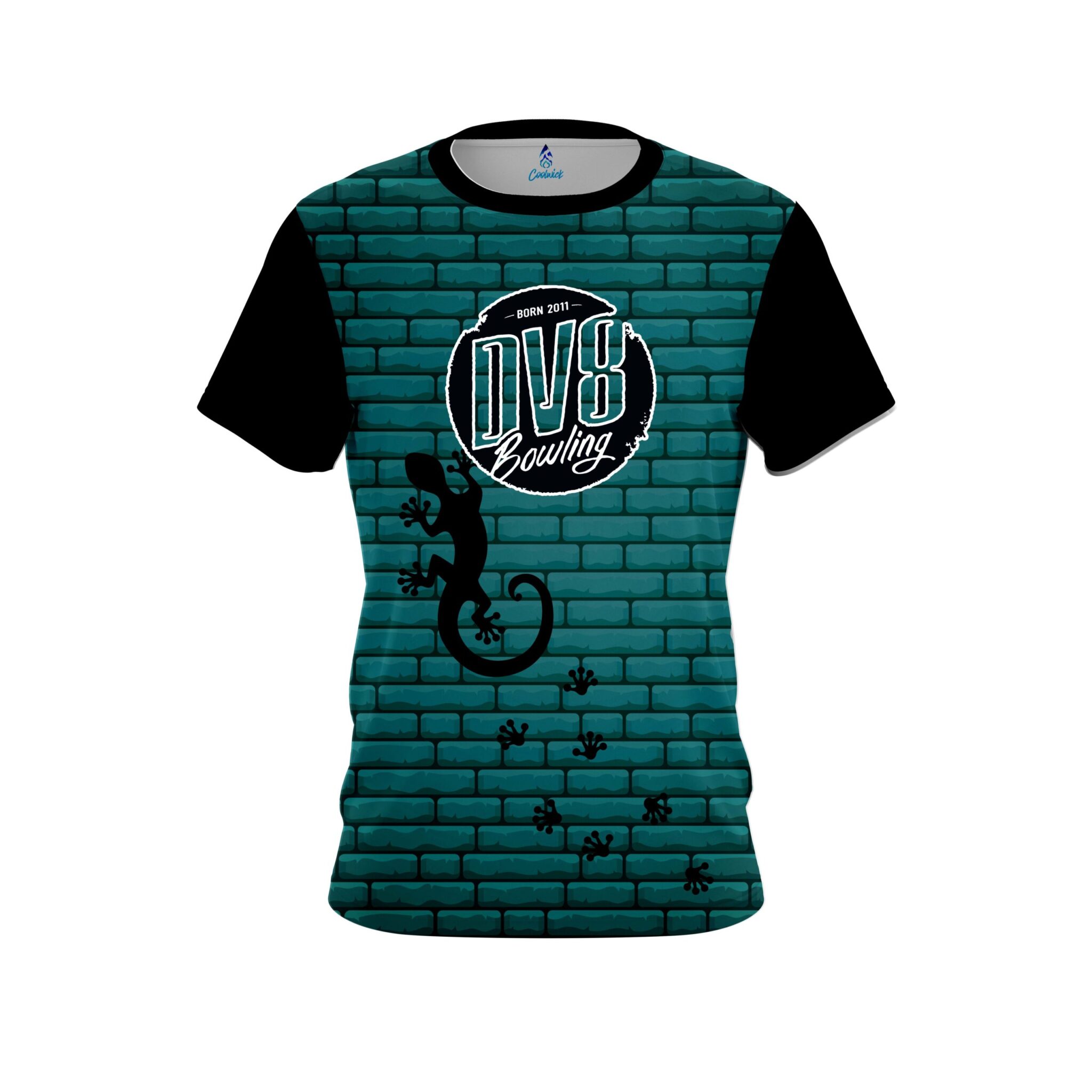 Stay 40% cooler with CoolWick. Our DV8 Turq Bricks Gecko CoolWick Bowling Jerseys are made of two different fabrics with the back being our CoolWick technology fabric that helps wick moisture away and helps air flow more easily through the fibers.