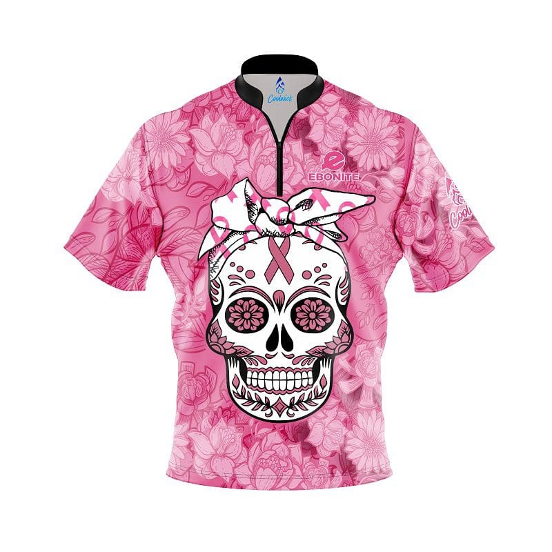 Our Fast Track jerseys come with a sash zip collar at no extra charge! There are no additional logos in order to ensure speedy production of your Ebonite Breast Cancer Mashup Fast Track CoolWick Bowling Jersey, which will complete the production process in 7 to 14 Days!