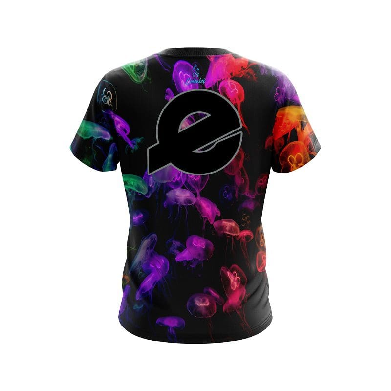 Stay 40% cooler with CoolWick. Our Ebonite Glowing Jellyfish CoolWick Bowling Jerseys are made of two different fabrics with the back being our CoolWick technology fabric that helps wick moisture away and helps air flow more easily through the fibers.