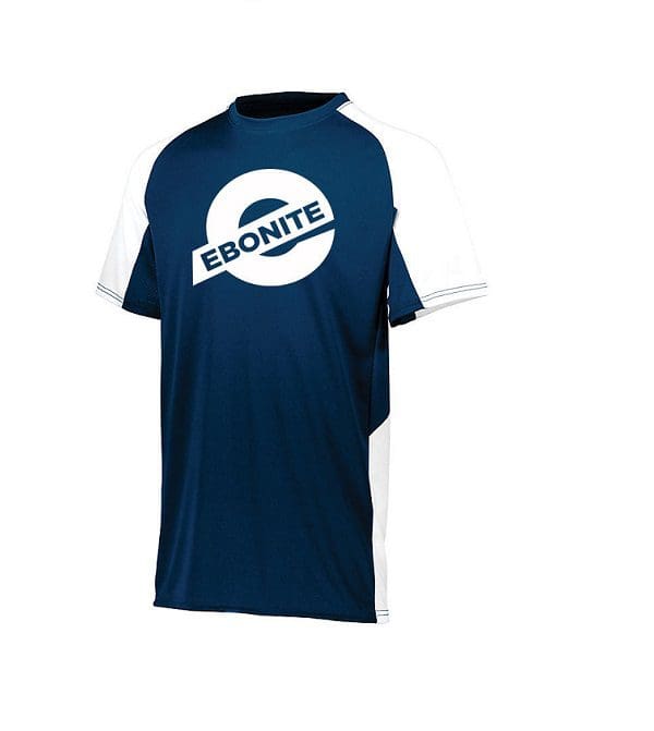 Ebonite Men’s Maxim Performance Crew Neck Bowling Shirt Dri-Fit Navy White