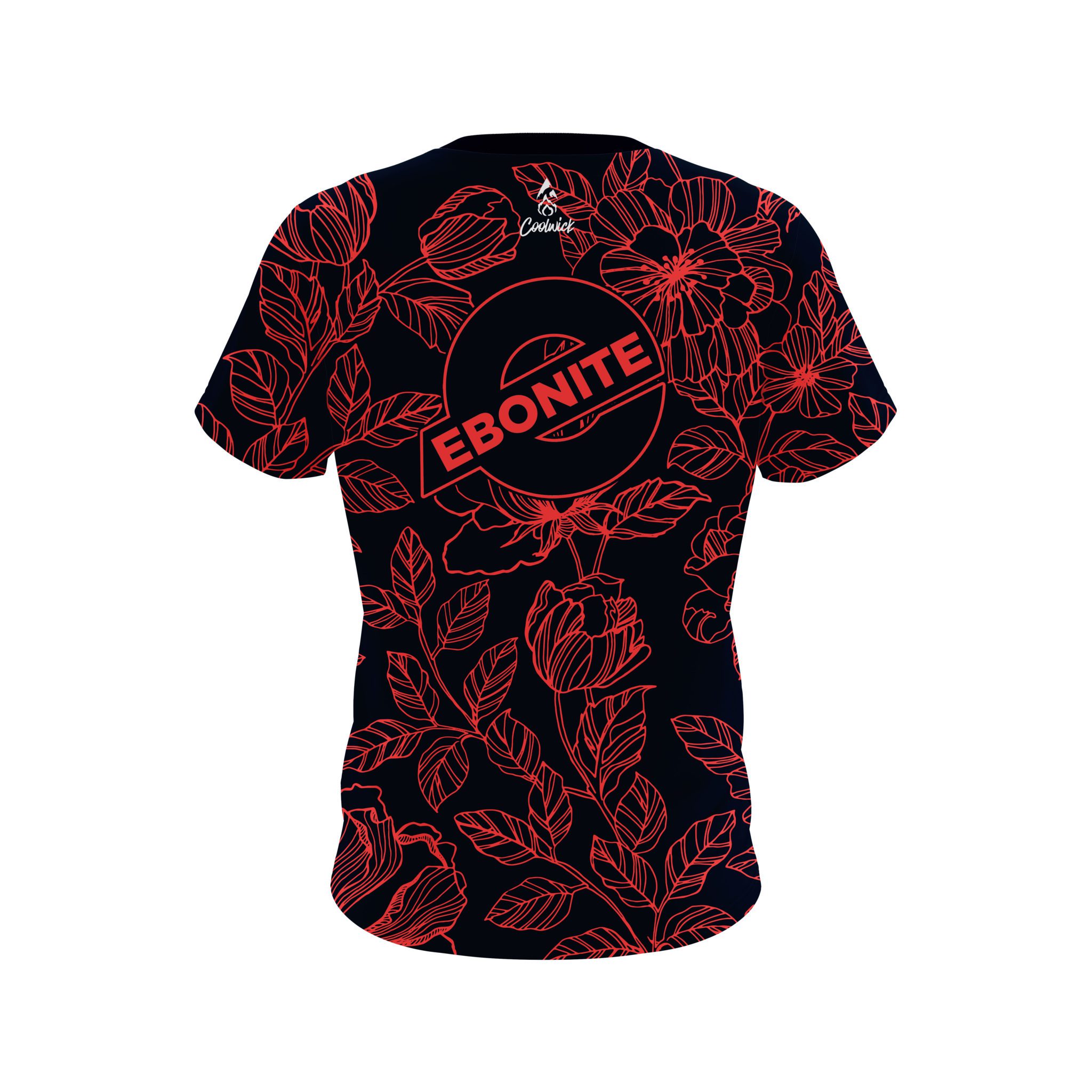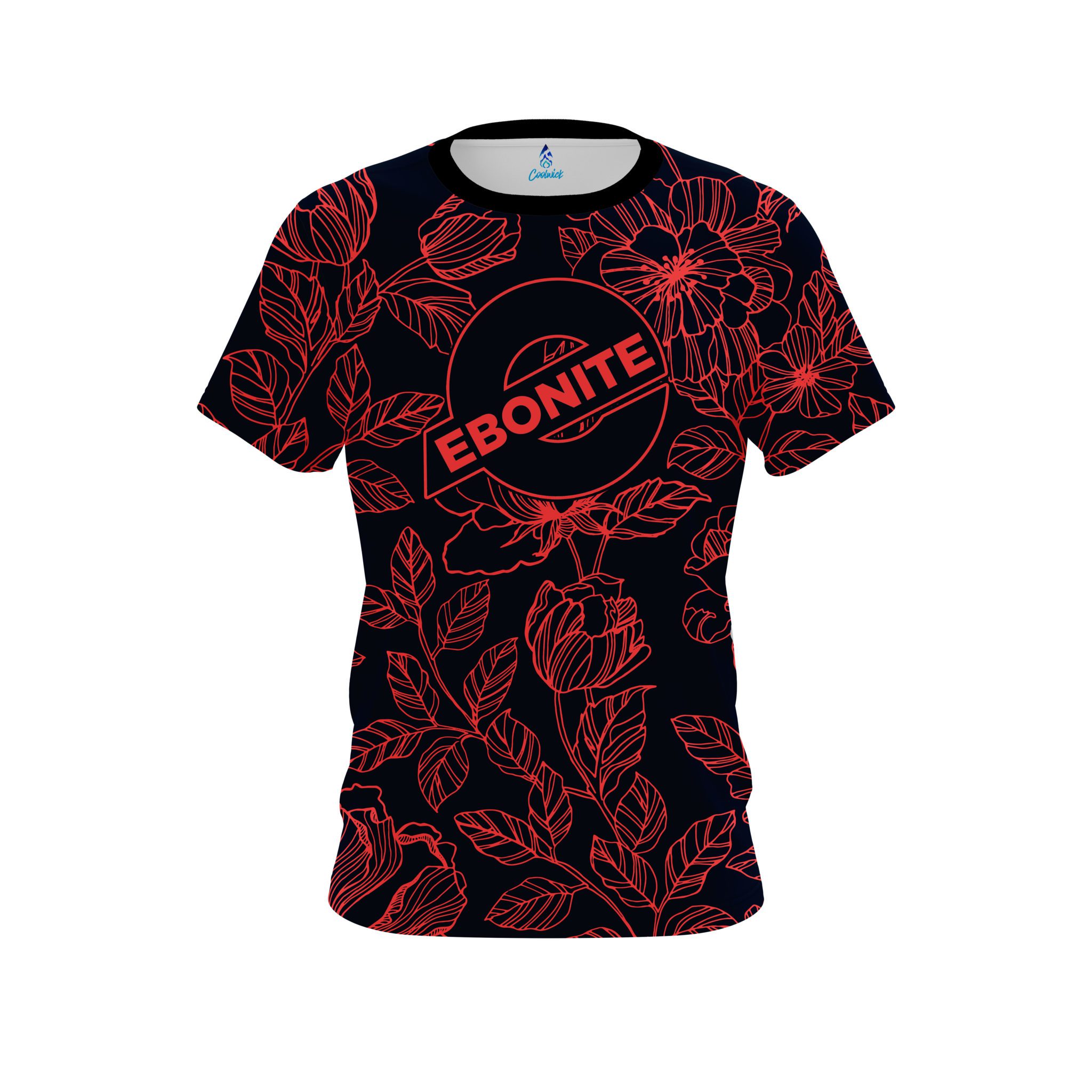 Stay 40% cooler with CoolWick. Our Ebonite Navy Red Flower Tattoo CoolWick Bowling Jerseys are made of two different fabrics with the back being our CoolWick technology fabric that helps wick moisture away and helps air flow more easily through the fibers.