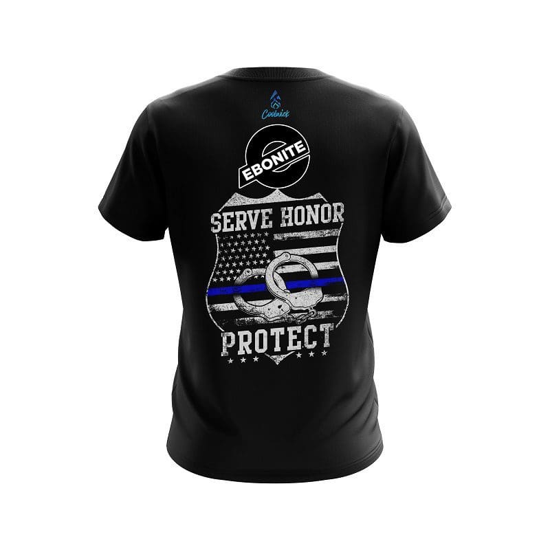Stay 40% cooler with CoolWick. Our Ebonite Police Protect CoolWick Bowling Jerseys are made of two different fabrics with the back being our CoolWick technology fabric that helps wick moisture away and helps air flow more easily through the fibers.