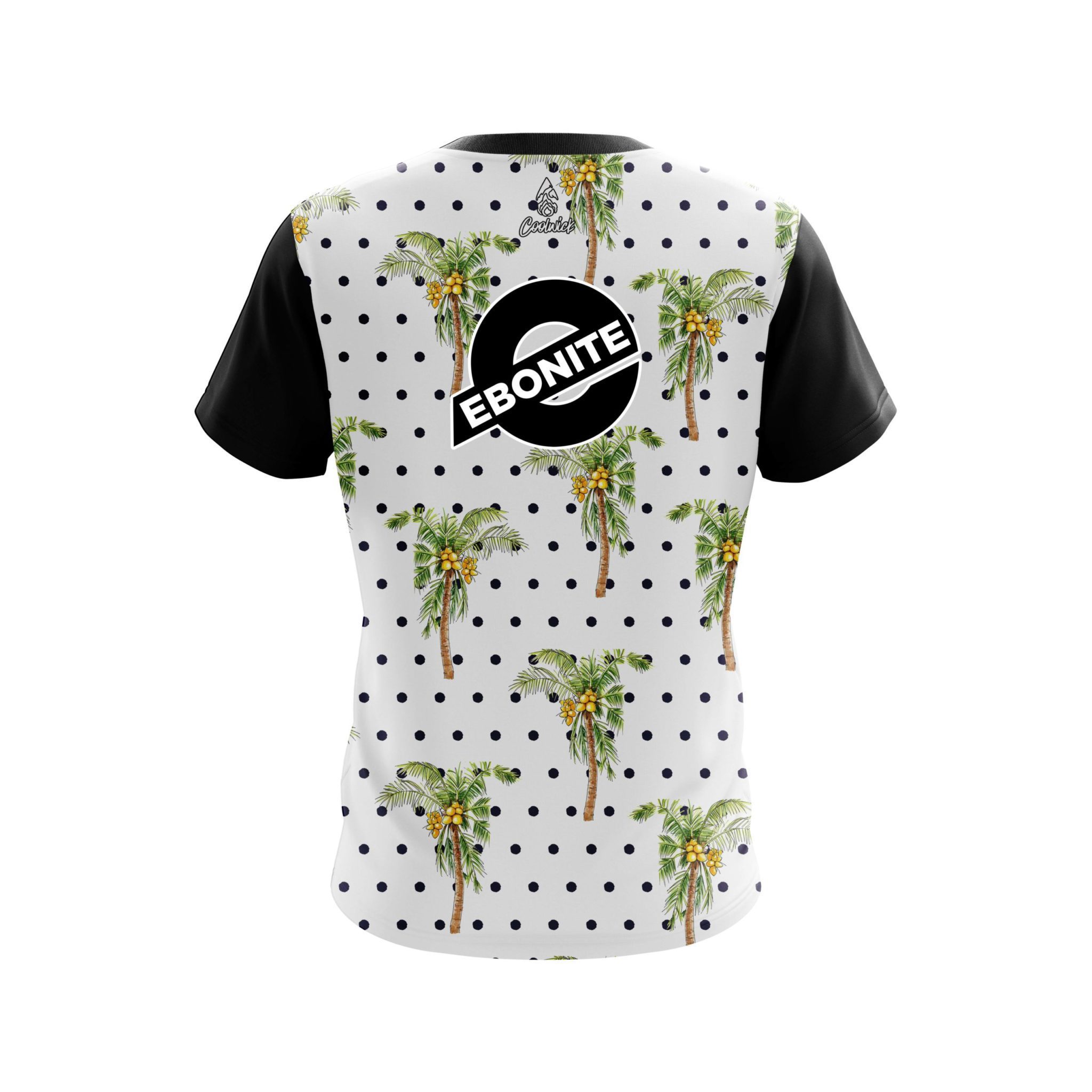 Stay 40% cooler with CoolWick. Our Ebonite Polka Dots Palm Trees CoolWick Bowling Jerseys are made of two different fabrics with the back being our CoolWick technology fabric that helps wick moisture away and helps air flow more easily through the fibers.