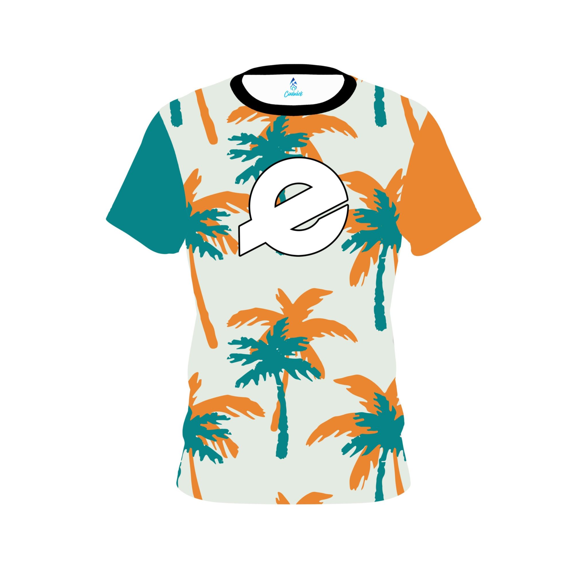 Stay 40% cooler with CoolWick. Our Ebonite Teal Orange Palm Trees CoolWick Bowling Jerseys are made of two different fabrics with the back being our CoolWick technology fabric that helps wick moisture away and helps air flow more easily through the fibers.