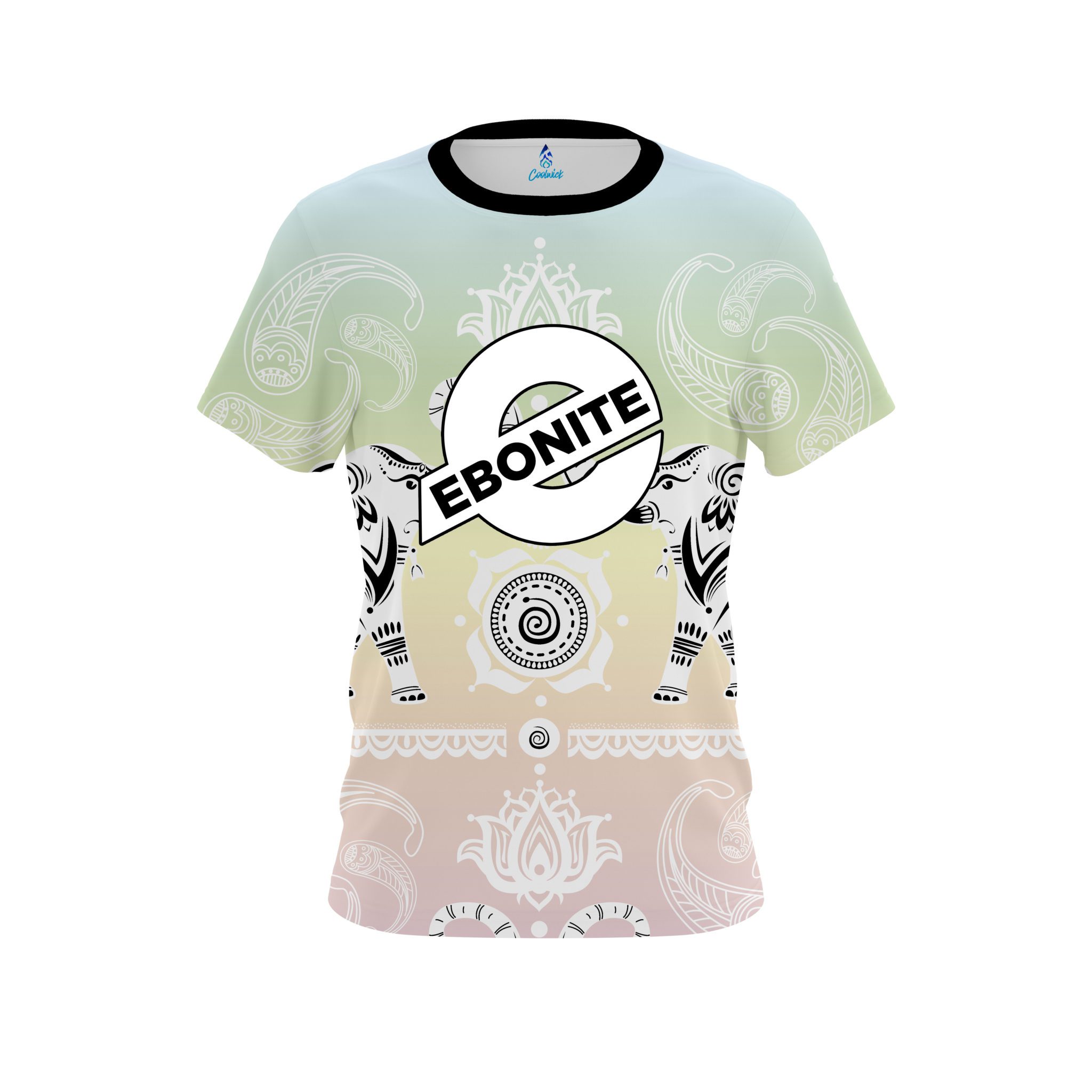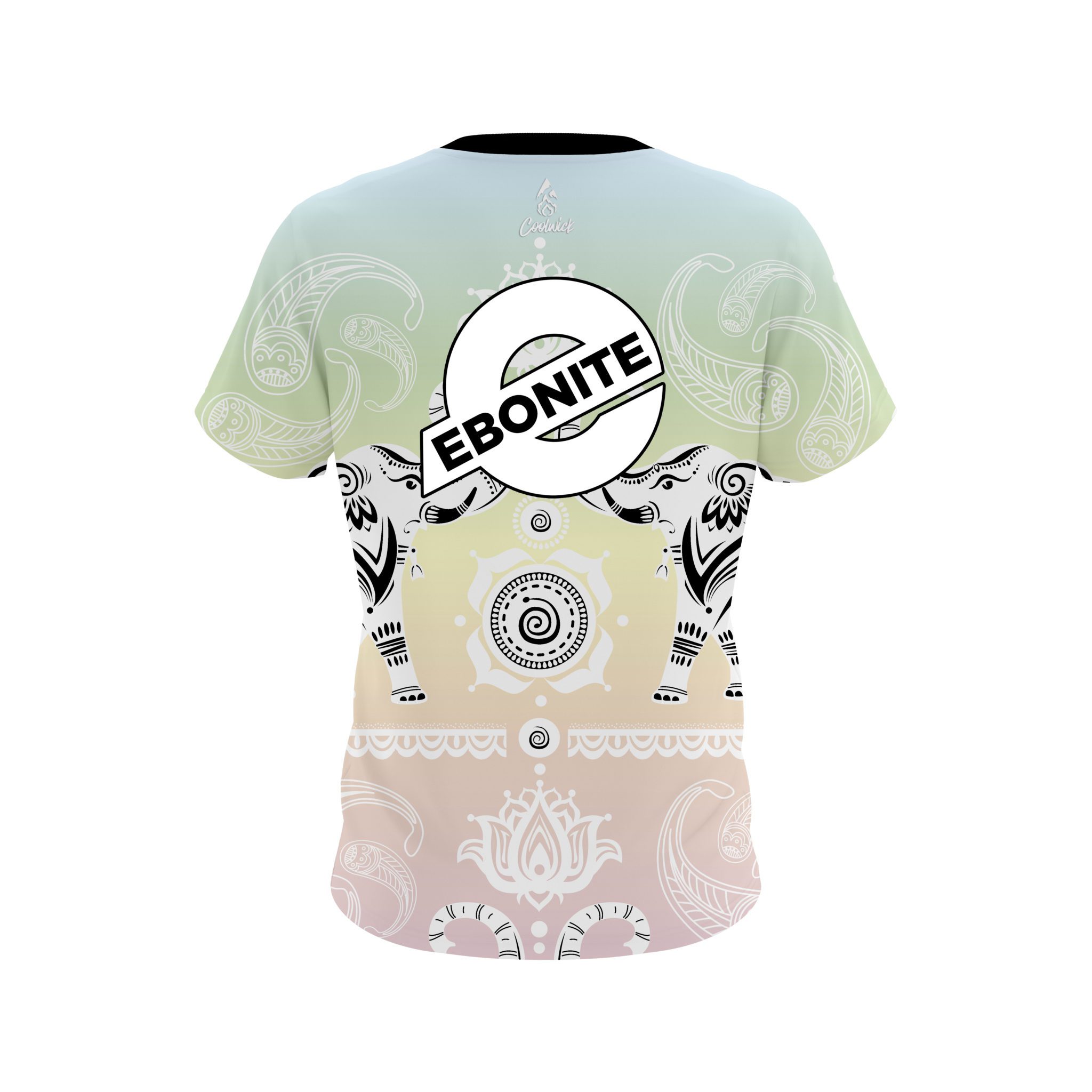 Stay 40% cooler with CoolWick. Our Ebonite Tribal Elephants Pastel Rainbow CoolWick Bowling Jersey are made of two different fabrics with the back being our CoolWick technology fabric that helps wick moisture away and helps air flow more easily through the fibers.
