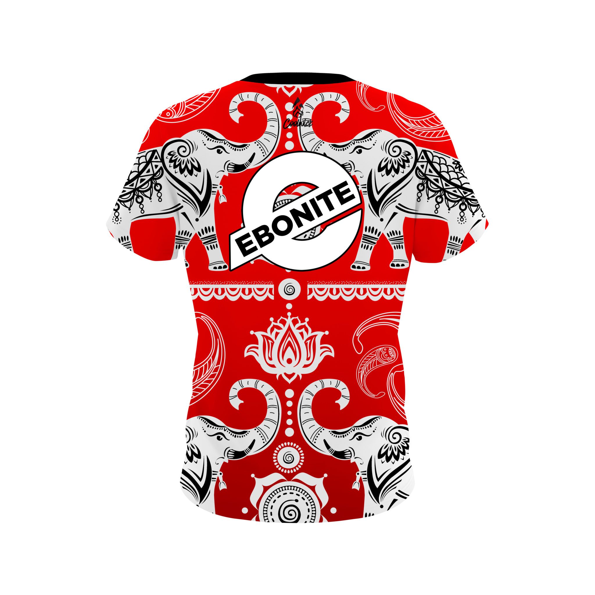 Stay 40% cooler with CoolWick. Our Ebonite Tribal Elephants Red CoolWick Bowling Jersey are made of two different fabrics with the back being our CoolWick technology fabric that helps wick moisture away and helps air flow more easily through the fibers.