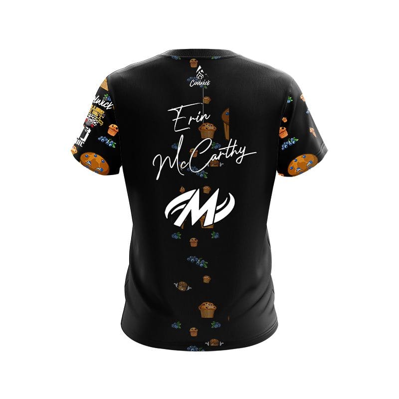 Designed, cut and sewn by hand stay 40% cooler with CoolWick. Our Erin McCarthy Blueberry Muffins CoolWick Bowling Jerseys are made of two different fabrics. The back being our CoolWick technology fabric that helps wick moisture away and helps air flow more easily through the fibers.