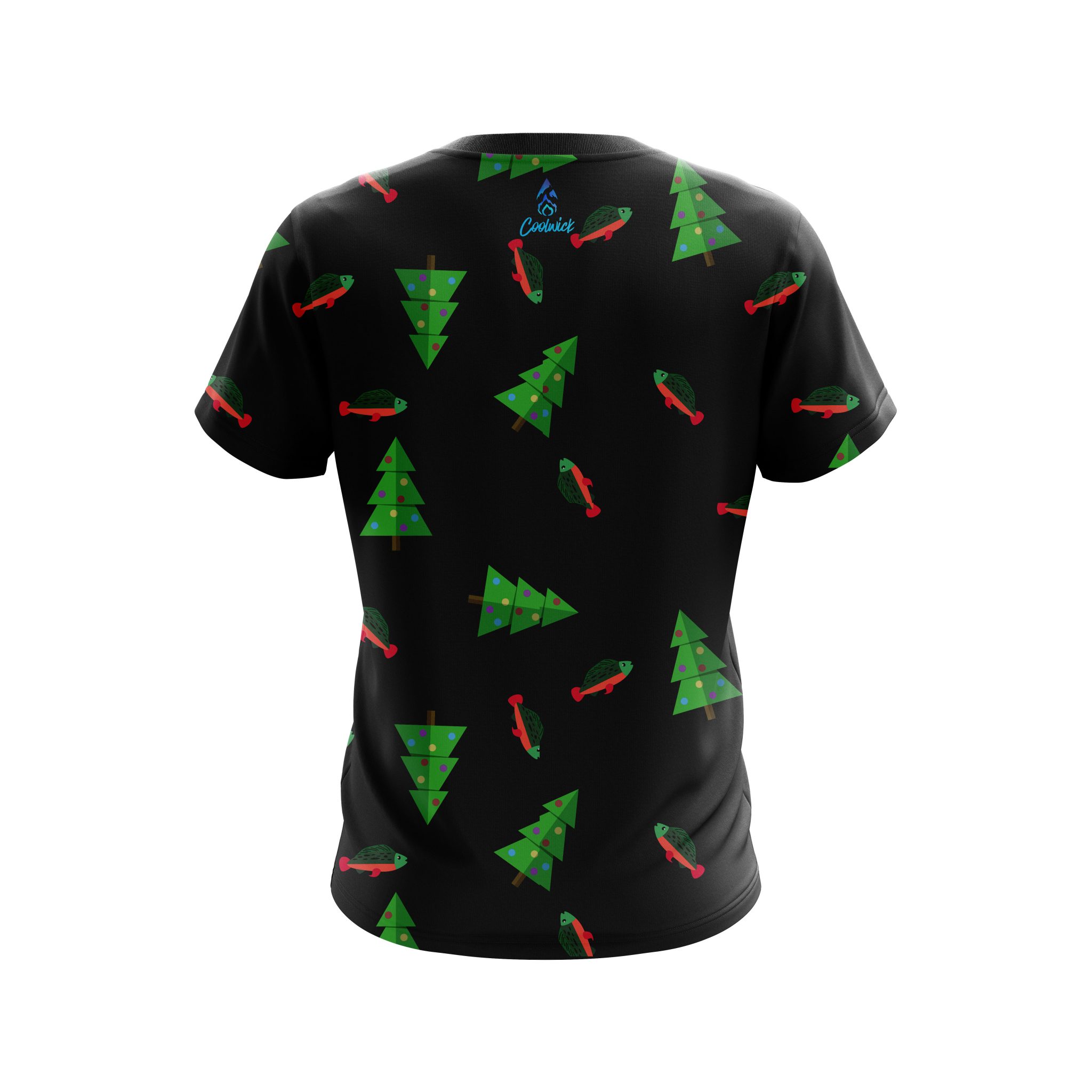 Stay 40% cooler with CoolWick. Our Fishing Christmas CoolWick Fishing Jerseys are made of two different fabrics with the back being our CoolWick technology fabric that helps wick moisture away and helps air flow more easily through the fibers. They also are UPF 50 and made of 100% Polyester.
