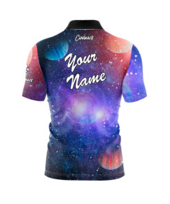Our Fast Track jerseys come with a sash zip collar at no extra charge! There are no additional logos in order to ensure speedy production of your Galaxy Spiral Fast Track CoolWick Bowling Jersey, which will complete the production process in 7 to 14 Days!