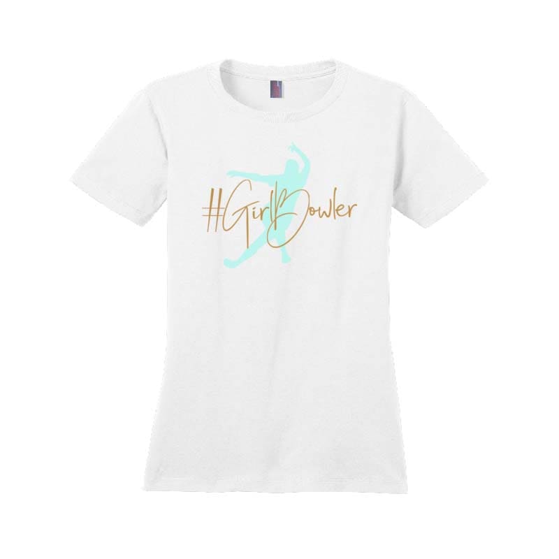 #GirlBowler Womens White and Mint Green Bowling T-Shirt