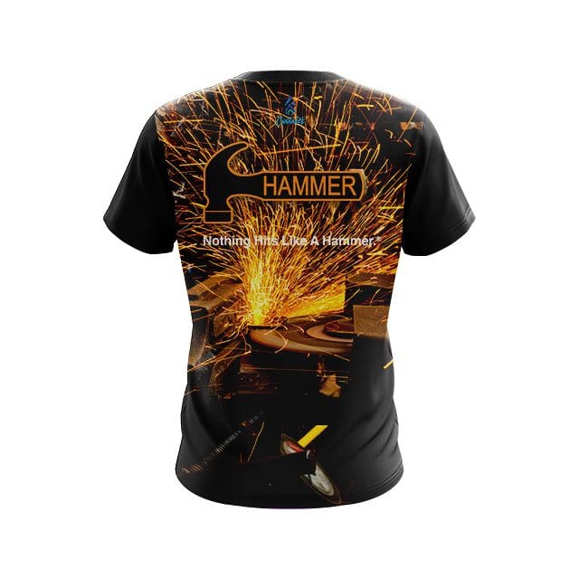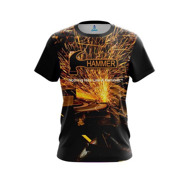 Stay 40% cooler with the Hammer Grinder CoolWick Bowling Jersey. Our bowling jerseys are made of two different fabrics. With the back being our CoolWick technology fabric that helps wick moisture away and helps air flow more easily through the fibers.
