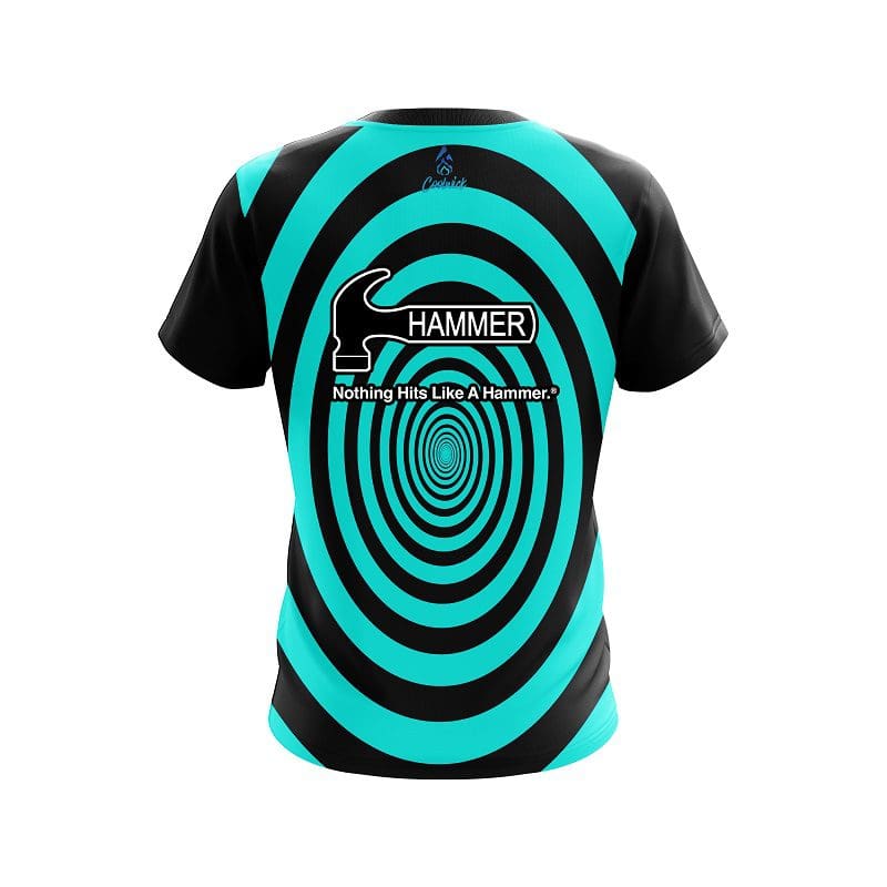 Stay 40% cooler with CoolWick. Our Hammer Aqua Swirl CoolWick Bowling Jersey are made of two different fabrics with the back being our CoolWick technology fabric that helps wick moisture away and helps air flow more easily through the fibers.