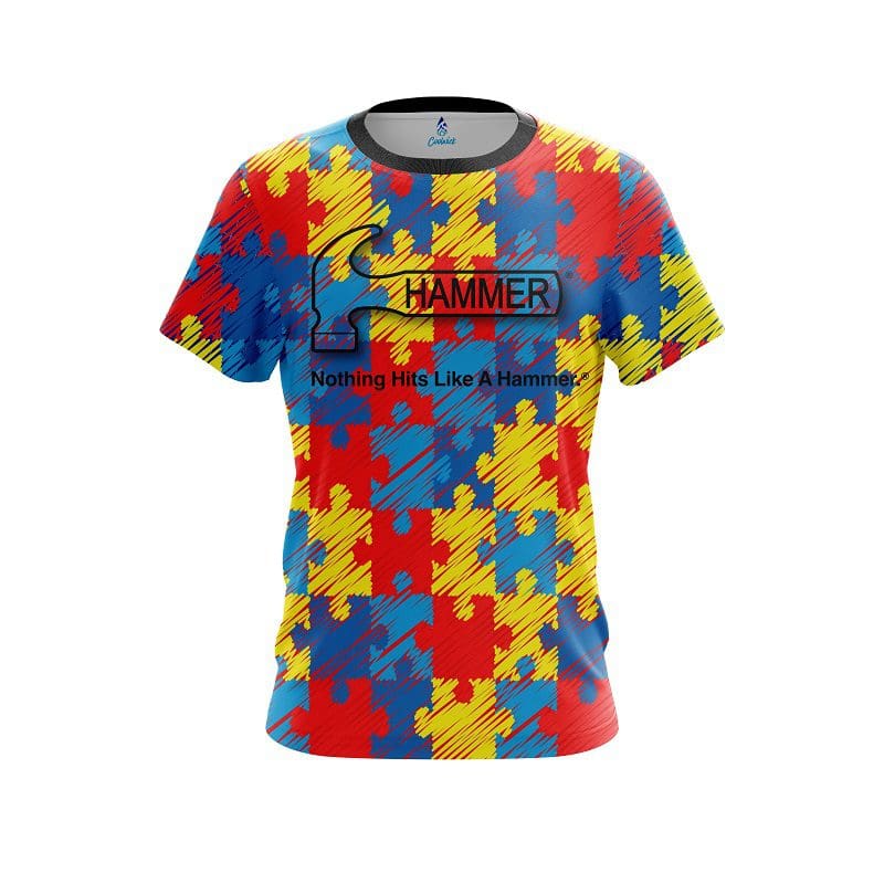 Stay 40% cooler with CoolWick. Our Hammer Autism Awareness CoolWick Bowling Jerseys are made of two different fabrics with the back being our CoolWick technology fabric that helps wick moisture away and helps air flow more easily through the fibers.