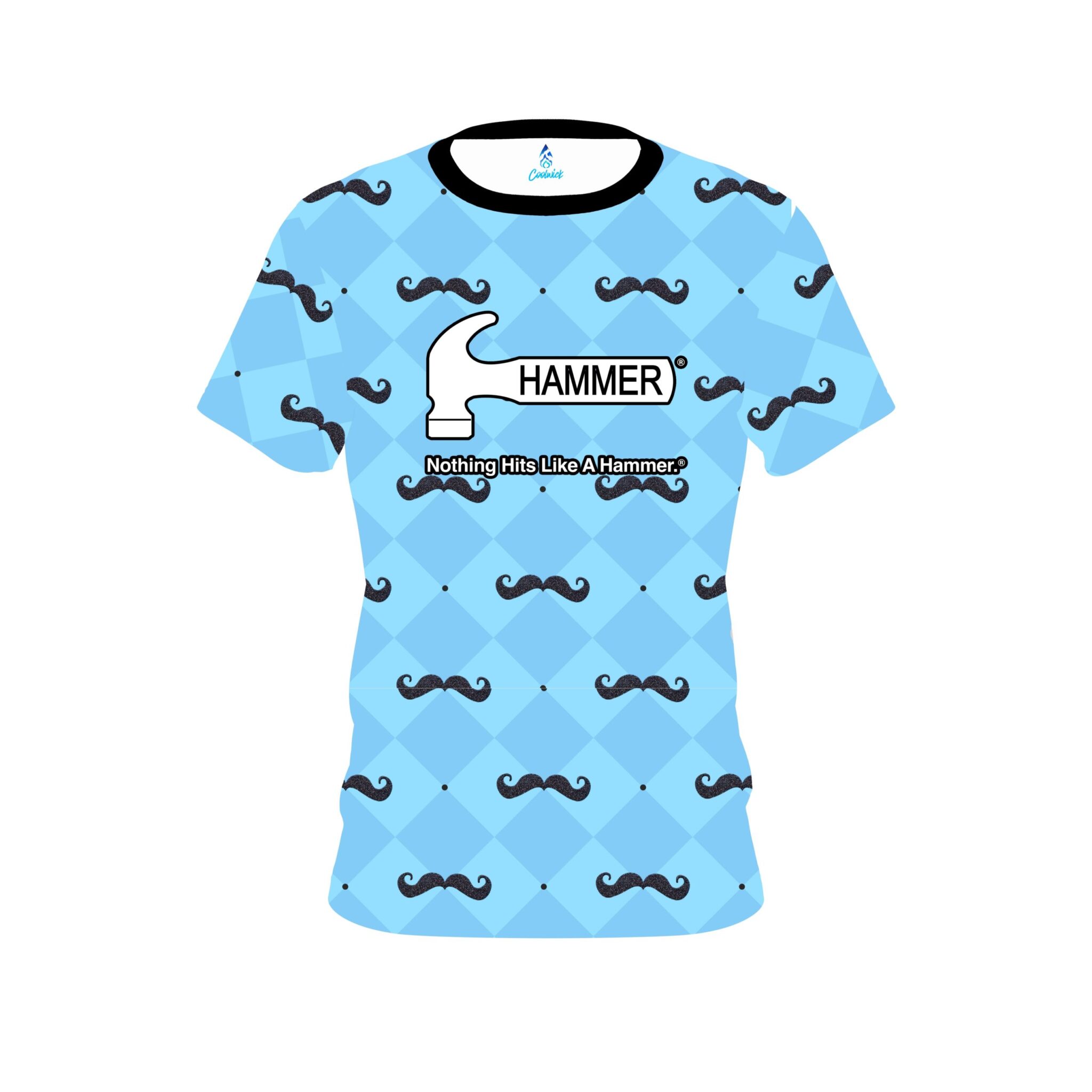 Stay 40% cooler with CoolWick. Our Hammer Baby Blue Mustache CoolWick Bowling Jerseys are made of two different fabrics with the back being our CoolWick technology fabric that helps wick moisture away and helps air flow more easily through the fibers.