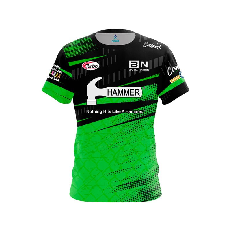 Are you ready to exceed the benchmark of style and performance? Elevate your game with the Hammer Barta Nation Green Black CoolWick Bowling Jersey. Don’t miss out on this extraordinary opportunity – get yours today and experience the epitome of bowling excellence!