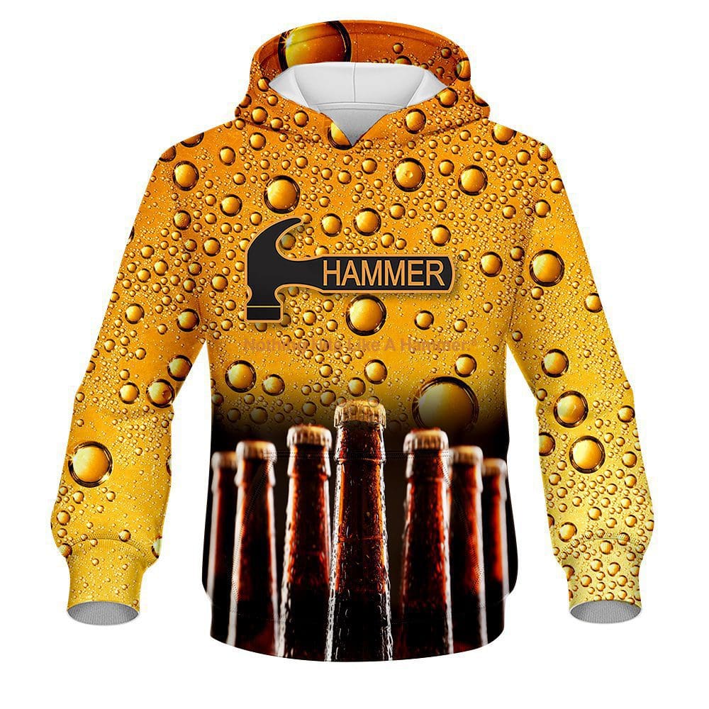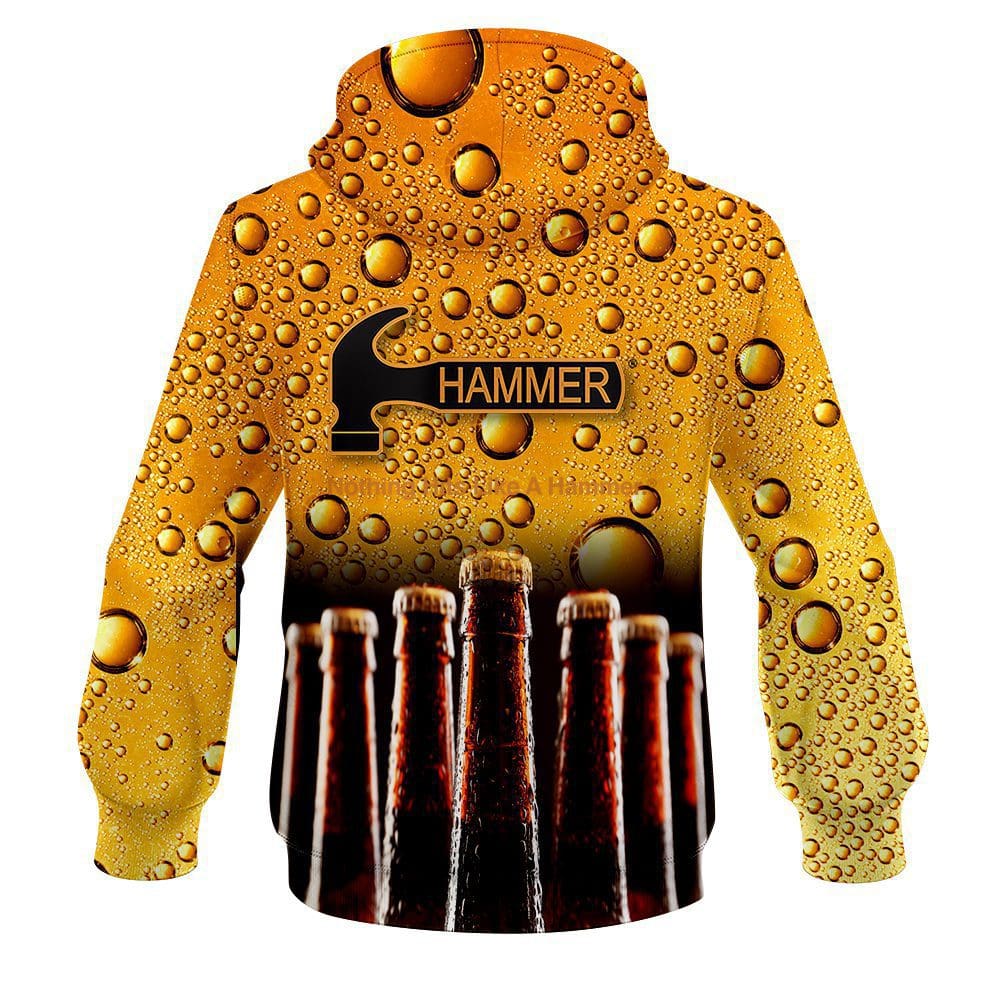 Designed, cut and sewn by hand, our Hammer Beer Bottles CoolWick Bowling Hoodies are made to keep you warm and comfy with HD graphics and eye-catching style.