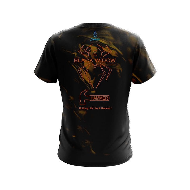Stay 40% cooler with CoolWick. Our Hammer Black Widow Gold CoolWick Bowling Jerseys are made of two different fabrics with the back being our CoolWick technology fabric that helps wick moisture away and helps air flow more easily through the fibers.