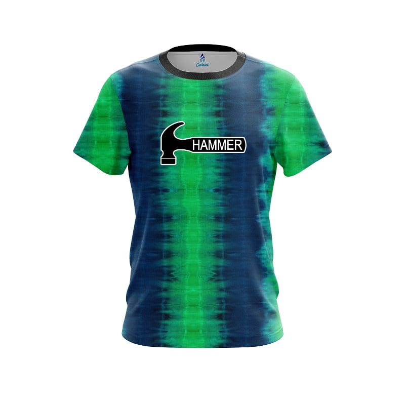 Stay 40% cooler with CoolWick. Our Hammer Blue And Green Tie Dye CoolWick Bowling Jerseys are made of two different fabrics with the back being our CoolWick technology fabric that helps wick moisture away and helps air flow more easily through the fibers.