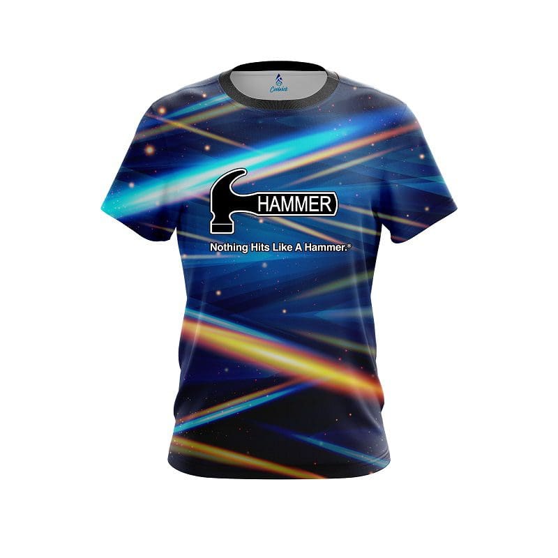 Stay 40% cooler with CoolWick. Our Hammer Blue Futuristic Rays CoolWick Bowling Jerseys are made of two different fabrics with the back being our CoolWick technology fabric that helps wick moisture away and helps air flow more easily through the fibers.