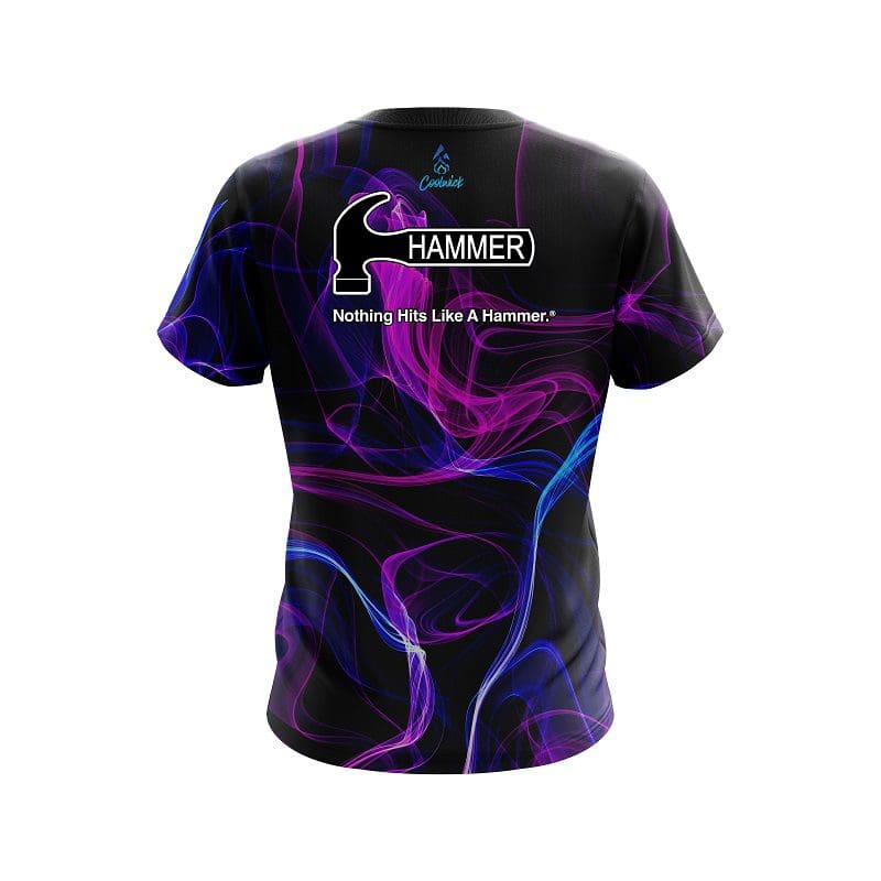 Stay 40% cooler with CoolWick. Our Hammer Blue Purple Smoke CoolWick Bowling Jerseys are made of two different fabrics with the back being our CoolWick technology fabric that helps wick moisture away and helps air flow more easily through the fibers.