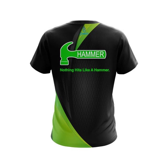 Stay 40% cooler with CoolWick. Our Hammer Carbon Green Swirl CoolWick Bowling Jerseys are made of two different fabrics with the back being our CoolWick technology fabric that helps wick moisture away and helps air flow more easily through the fibers.